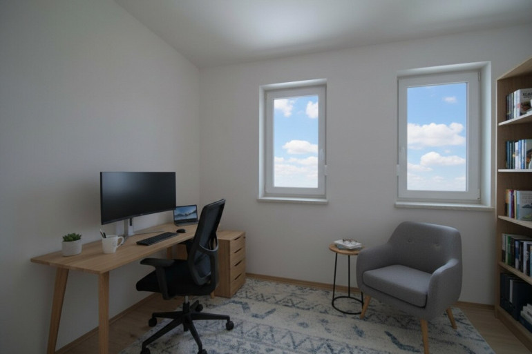 „Die dargestellten Möbel und Einrichtungsgegenstände dienen der besseren räumlichen Vorstellung und wurden mittels KI visualisiert. Sie sind nicht Bestandteil der tatsächlichen Ausstattung der Immobilie.“