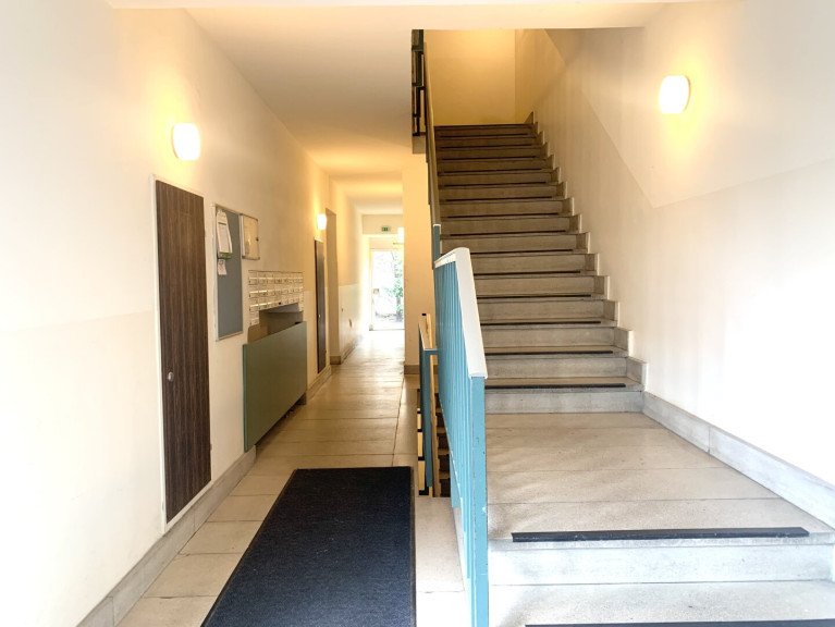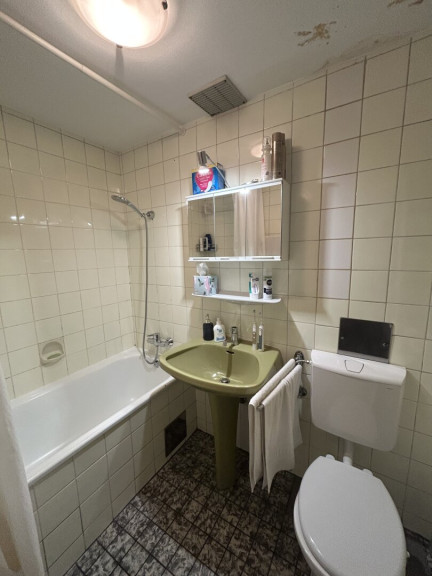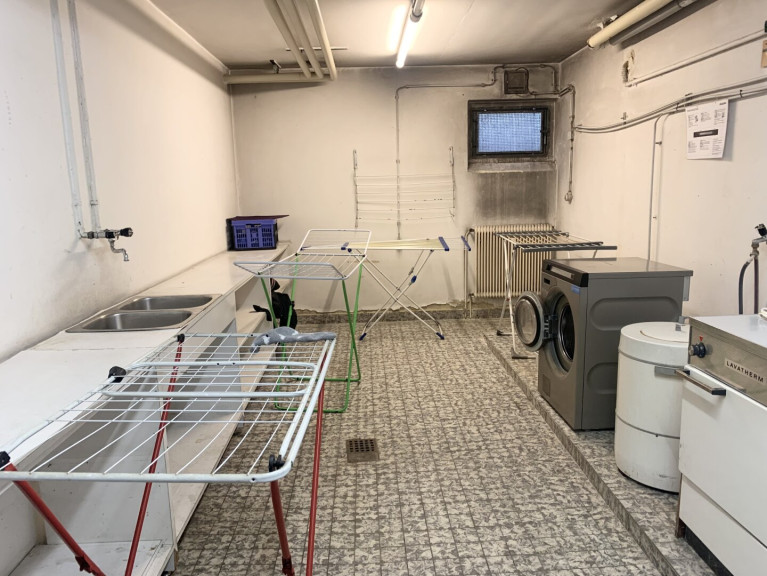 In der Wohnung selbst steht kein Waschmaschinenanschluss zur Verfügung, eine Waschmaschine und ein Trockner befinden sich zur Nutzung im Untergeschoss.