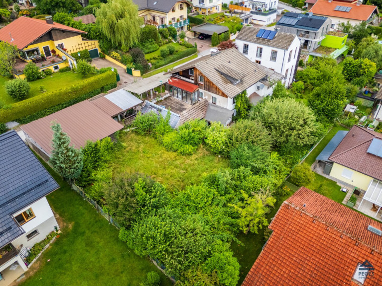 Das verkaufsgegenständliche Grundstück verfügt lt. Grundbuchauszug über eine Gesamtfläche von 1194 m² und eine südöstliche Ausrichtung, liegt inmitten einer sonnigen Wohnsiedlung und umfasst zwei Parzellen mit ca. 600 m² und 594 m², (davon sind lt. aktuellem Grundbuchauszug ca. 141 m² bzw. 200 m² Gebäudefläche, und ca. 459 m² bzw. 394 m² Gärten). Die Teilung des Grundstücks (zwei Parzellen) ist möglich bzw. der Erwerb der Liegenschaft kann entweder gesamt oder geteilt erfolgen. Der Wohnhausbestand auf der Liegenschaft ist vor einer Bebauung abzubrechen.