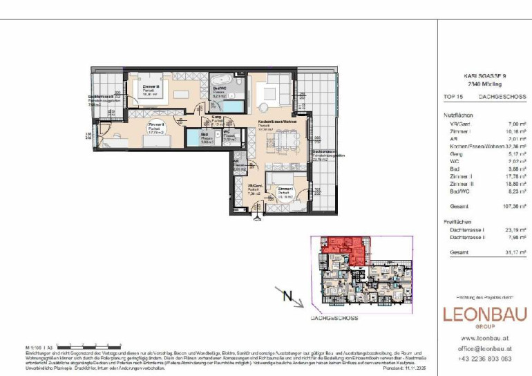 Leon Bau steht seit 2006 für höchsten Komfort, was sich auch in diesem Projekt erneut widerspiegelt. Das Neubauprojekt Karl9“ steht für modernes Wohnen auf höchstem Niveau. Die Architektur mit klaren Linien und offen gestalteten Grundrissen schafft ein einzigartiges Wohngefühl. Große Fensterflächen sorgen für lichtdurchflutete Räume, während hochwertige Materialien ein stilvolles Ambiente garantieren. Besonderes Augenmerk wurde auf eine nachhaltige und energieeffiziente Bauweise gelegt. Die durchdachte Gestaltung der Fassade sowie die Auswahl hochwertiger Tür- und Fensterelemente tragen maßgeblich zur Reduzierung des Heizwärmebedarfs und zur Optimierung der Energieeffizienz des Gebäudes bei.Insgesamt entstehen 17 exklusive Eigentumswohnungen auf 3 Geschossen mit Wohnflächen zwischen ca. 56 m² und ca. 123 m². Jede Einheit verfügt entweder über einen privaten Garten mit Terrasse, einen großzügigen Balkon und/oder eine Loggia, die zusätzlichen Wohnraum im Freien bietet. Selbstverständlich stehen in diesem exklusiven Objekt 29 Tiefgaragenplätze zur Verfügung.