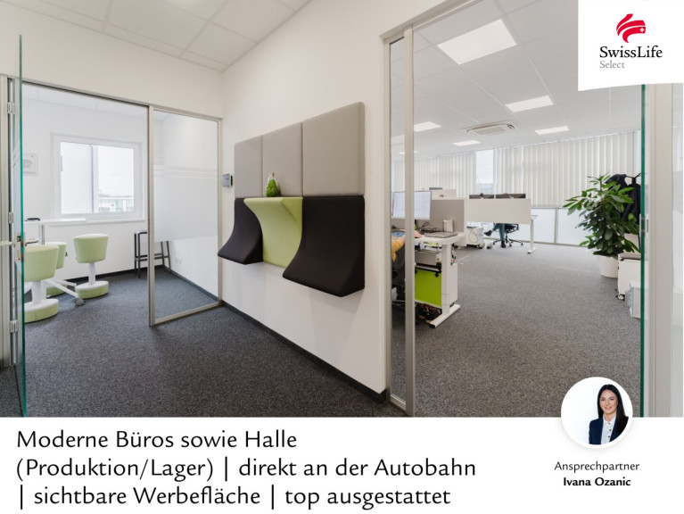 Moderne Büros sowie Halle (Produktion/Lager) | direkt an der Autobahn | sichtbare Werbefläche | top ausgestattet