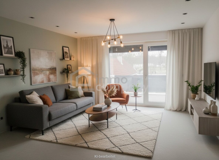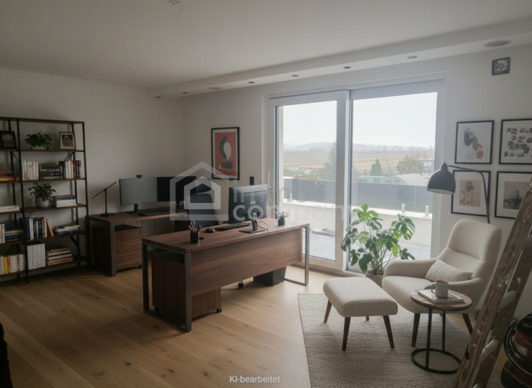 Die Wohnung befindet sich in dem Ort Margarethen am Moos in Niederösterreich. Sie ist als Maisonette konzipiert und erstreckt sich über zwei Etagen mit Blick auf den Schlosspark. Die Lage ist ruhig und idyllisch, umgeben von viel Grün und Natur. Es ist eine ideale Wohngegend für Familien oder Paare.