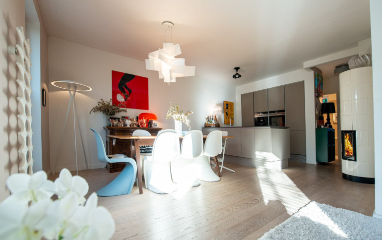 Eine Wand zwischen Wohnzimmer und einem der Kinderzimmer wurde entfernt - somit wurde die ursprüngliche 4-Zimmerwohnung zur 3-Zimmerwohnung umgebaut und der Wohn/Essbereich harmonisch erweitert.