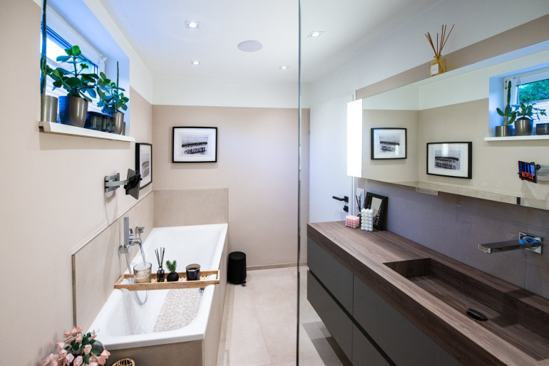 Zeitgleich wurde das Badezimmer hochwertig umgebaut und mit Badewanne und einer Regendusche ausgestattet.