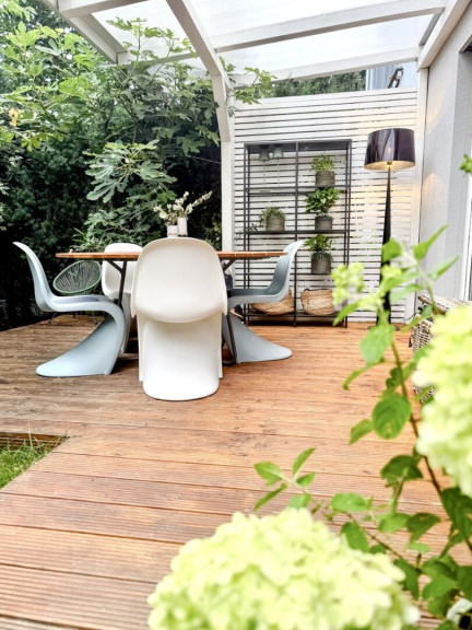 Hier ist mit Liebe zum Detail eine Wohlfühloase für Familie und Freunde entstanden. Durch die Südwest-Ausrichtung können Sie bis zum Abend die Sonne genießen.