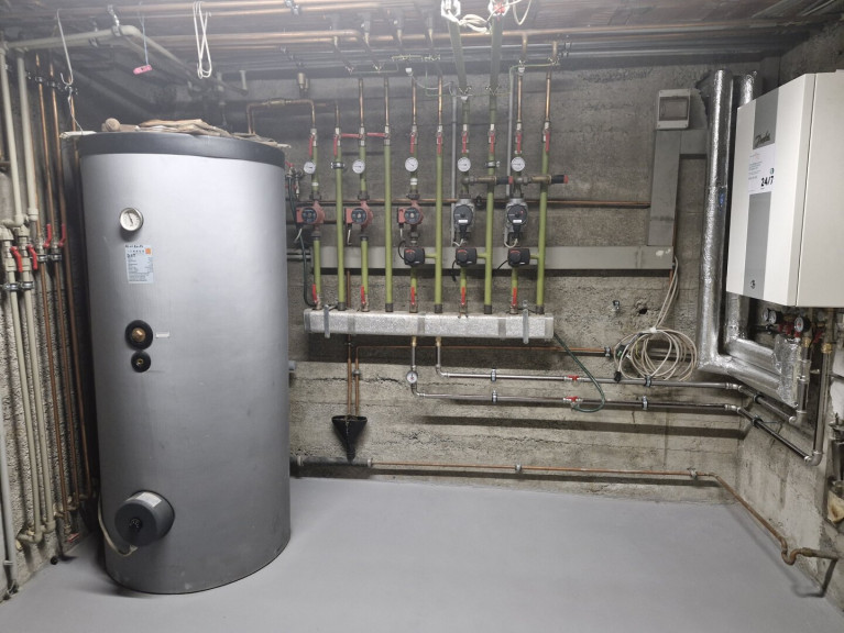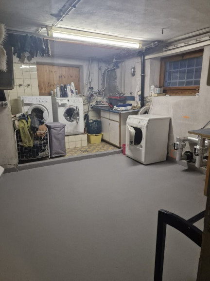 Kellergeschoss: Diverse Lagerräume, Waschküche, Raum für Schwimmbadtechnik, Heizungsraum, Einliegerwohnung mit Schlafzimmer, Bad, Essküche, Wohnzimmer. Gesamtfläche 120,45 m²