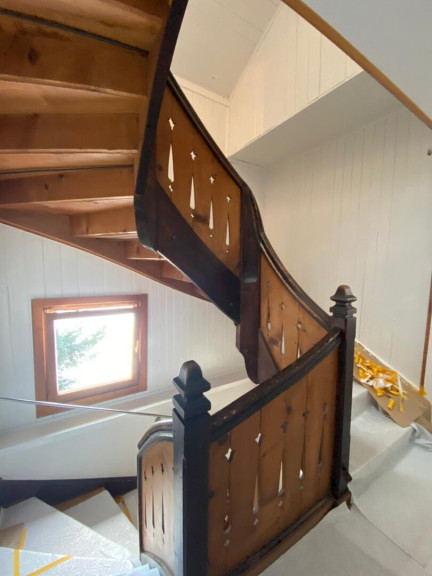 Die Apartment erstreckt sich über gesamt drei Stockwerke. Das Erdgeschoß und der Keller sind gemauert, Obergeschoss und Dachgeschoss wurden in Holzbauweise errichtet und sind zum Teil getäfelt.