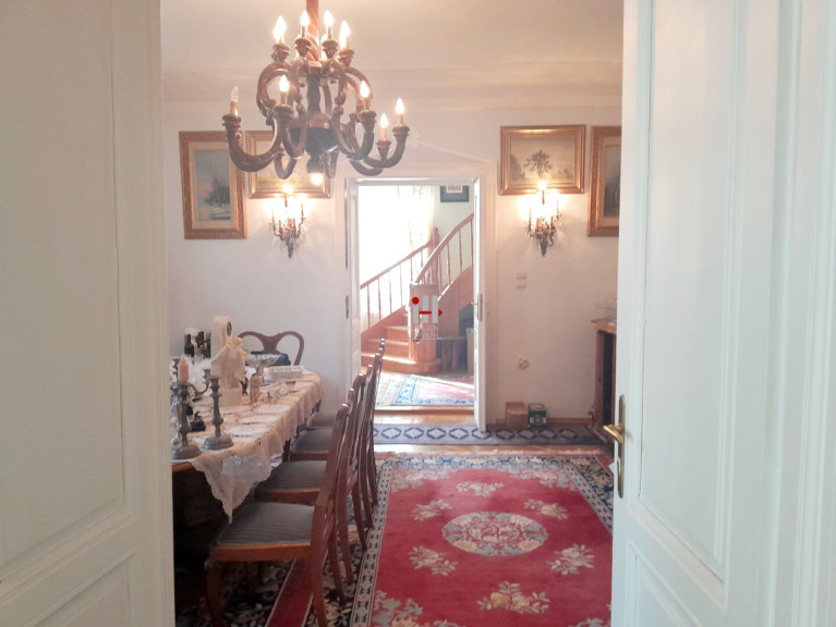 Das Innere des Hauses ist genauso beeindruckend wie die äußere Erscheinung. Der historische, offene Wohn- und Essbereich ist mit edlen Fliesen und einem stilvollen Kamin ausgestattet, der an kühlen Abenden eine behagliche Atmosphäre schafft.