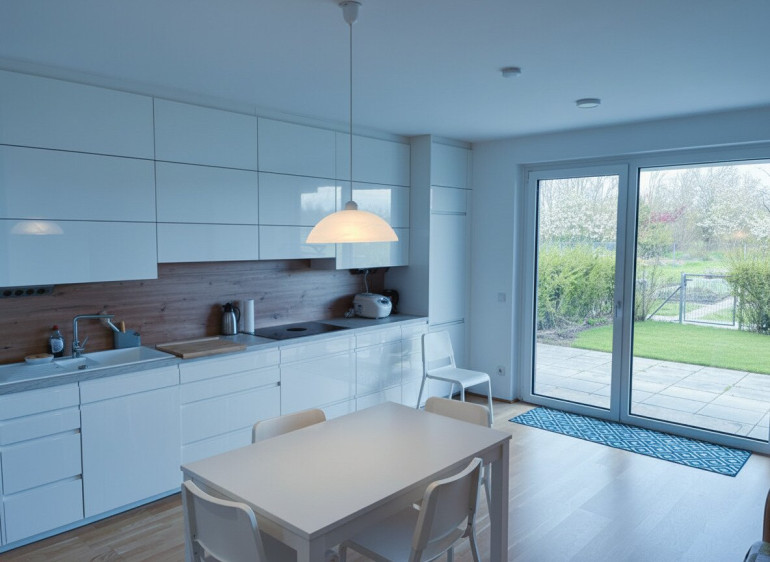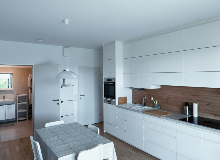 Herzstück der Wohnung ist die großzügige Wohnküche (ca. 26,9 m²), die viel Platz für Ihre individuelle Gestaltung bietet – ob gemütliche Sofaecke oder stilvolle Essgruppe, hier fühlt man sich sofort wohl. Die angrenzende Terrasse (ca. 11,3 m²) und der private Garten (ca. 52,8 m²) laden zum Entspannen im Freien ein.