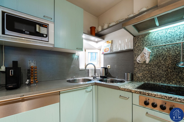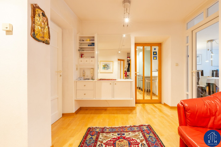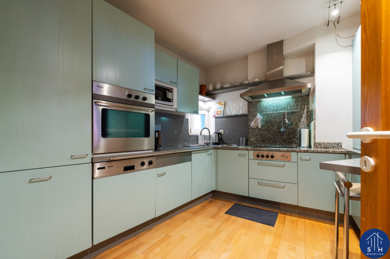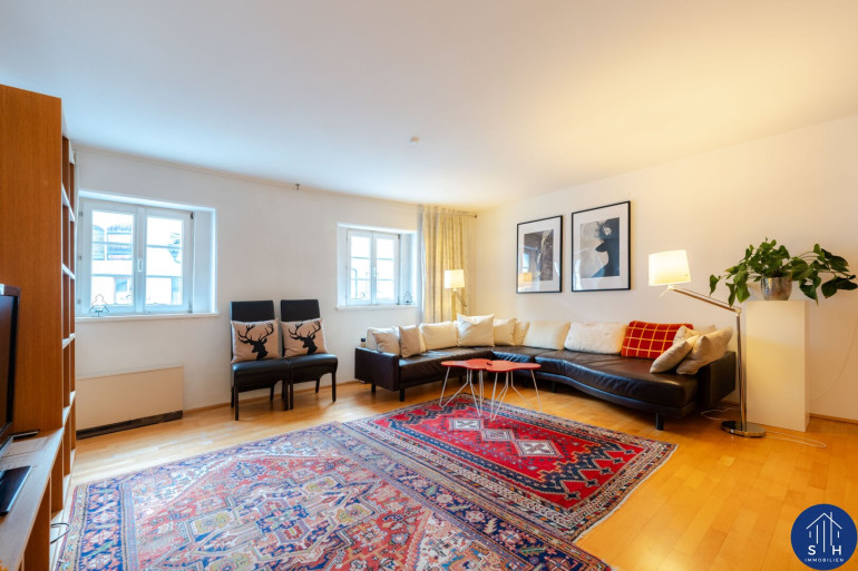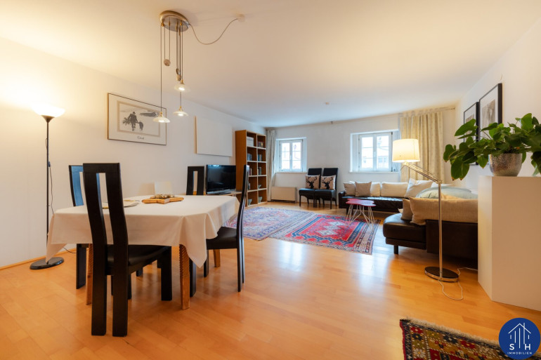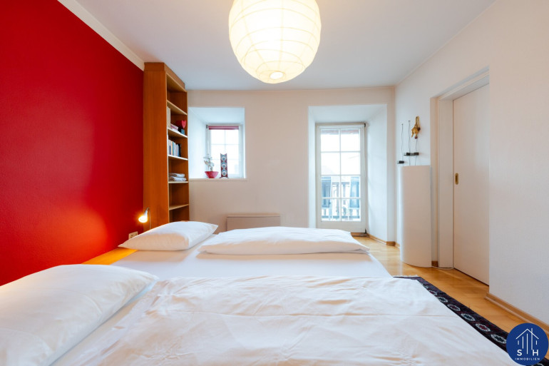 Die großzügige 110,08 m² Wohnung befindet sich im 3. Obergeschoss eines renovierten Altstadthauses und umfasst zwei Schlafzimmer, eines davon mit begehbarem Kleiderschrank und Balkonzugang. Das geräumige Wohnzimmer mit ca. 37 m² verfügt über einen Kaminanschluss und bietet eine gemütliche Atmosphäre. Ein Badezimmer mit Badewanne und Doppelwaschbecken, ein zusätzliches WC, zwei Abstellräume (ein Abstellraum in der Wohnung und einer vor der Wohnung) sowie ein sonniger Balkon komplettieren das Wohnangebot. Diese Wohnung wird inklusive der kompletten Einrichtung mit Holzmöbeln und -böden verkauft.
