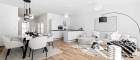 Verbindung zwischen Wohnraum und Außenbereich, der durch großzügige (12m² - 14m²) Balkone, Terrassen, Loggien
