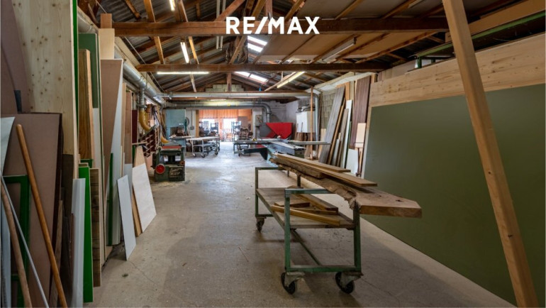 Ergänzt wird die Wohnfläche durch eine vollausgestattete Werkstatt sowie eine großzügige Lagerhalle. Die rund 200 m² umfassende, attraktive Gewerbefläche eignet sich ideal für verschiedenste Nutzungsmöglichkeiten – ob Handwerksbetrieb (z. B. Tischlerei), Lager oder kreative Unternehmungen.
