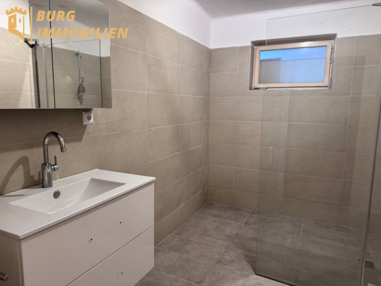 - Badezimmer mit Dusche und Waschbecken