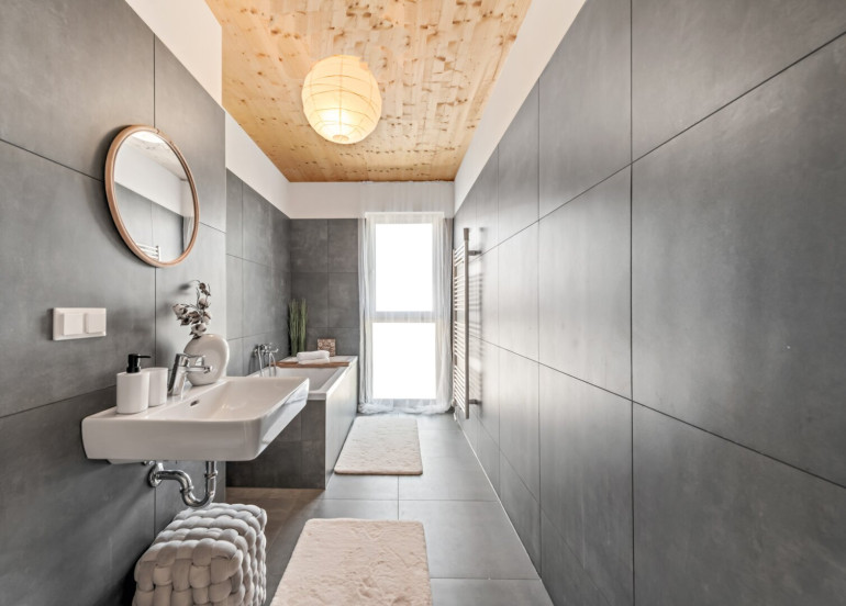 Die formschöne Architektur der mit vorvergrauten Lärchenholzfassaden veredelten Stadtvillen passt sich dank großzügiger Freiräume harmonisch an die natürliche Umgebung an. In Summe bieten die vier getrennten Häuser – zwei davon verfügen über eine direkte Garagenanbindung – auf jeweils drei Ebenen ausreichend Platz für insgesamt 36 barrierefreie Zwei- bis Vier-Zimmerwohnungen.