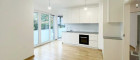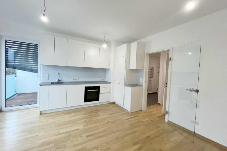 -) Wohnzimmer mit offener Küche und Ausgang auf die Loggia