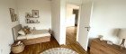 Die schicke 3-Zimmerwohnung im Erdgeschoss betritt man durch den gepflegten Eingangsbereich, welcher ausreichend Platz für eine Garderobe sowie den zentralen Zugang zu allen Räumlichkeiten der Wohnung bietet. Unmittelbar rechts vom Eingangsbereich befindet sich das Badezimmer mit Duschbadewanne und ein separates WC. Beide Nassräume sind durchgehend mit modernen Fliesen ausgestattet. Ein Abstellraum schafft Stauraum für nützliche Alltagsgegenstände. Die beiden Schlafräume sind ca. gleich groß, wobei sich als Master-Bedroom das rechte auszeichnet, da es eine Spur größer ist. Der zweite Schlafraum bietet sich idealerweise als Büro an, z.B. um Homeoffice zu betreiben. Der Wohn- Essbereich ist mit einer Einbauküche sowie modernen Gerätschaften ausgestattet. Die großen Fenster sorgen für viel Licht im Wohnraum,der helle Parkett lässt den Raum offen und freundlich wirken. Die sonnige, idyllische Terrasse gewährt mitsamt einer Gartenfläche von 45,00m² Ruhe und Erholung und hat eine angenehme Größe für einen geselligen Grillabend.