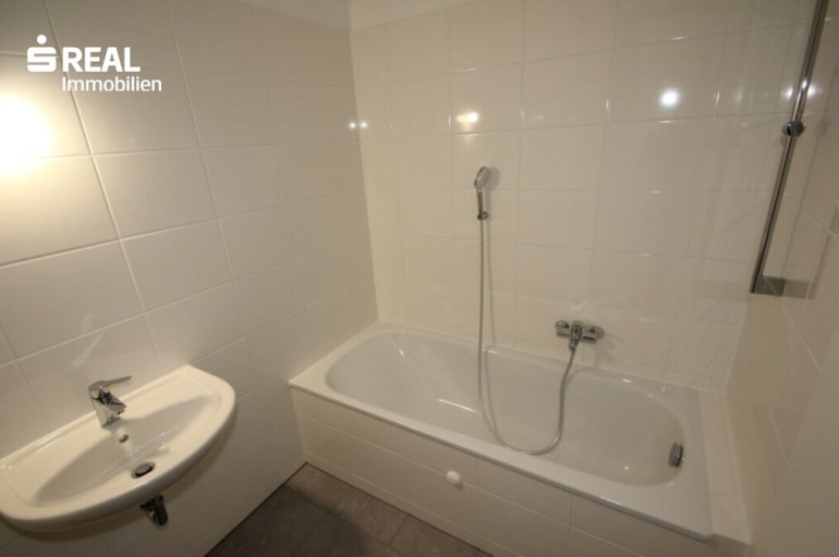 - Badezimmer mit Badewanne und Waschmaschinenanschluss