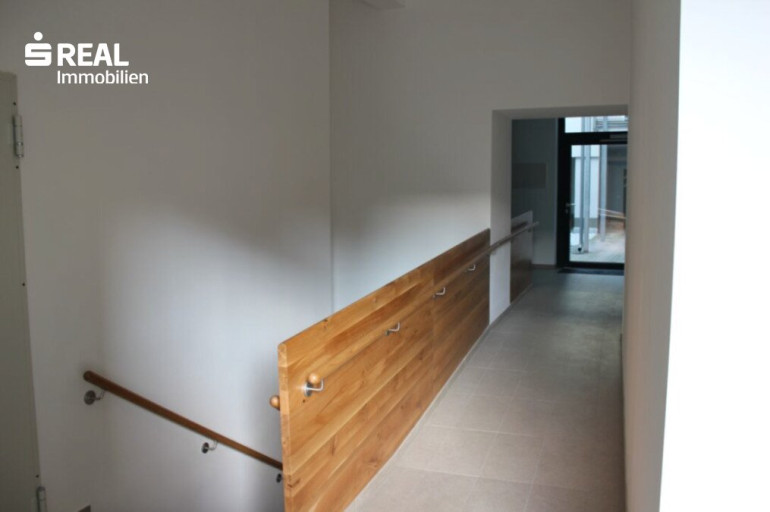 Die neu sanierte Eigentumswohnung mit Balkon liegt im 2. Liftstock (Dachgeschoss) eines generalsanierten Mehrparteienhauses, welches sich inmitten des Stadtzentrums direkt am Hauptplatz von Amstetten befindet.