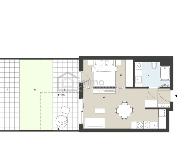 Die Gesamtfläche der Wohnung beträgt ca. 40 m2, die Wohnung befindet sich im EG. Diese Wohnung in einem eleganten Neubau verfügt über folgende Aufteilung: