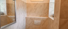 Im ca. 90m² großen Wirtschaftsgebäude sind außer dem Heizungstechnik-Bereich und dem geräumigen Holzlager zwei weitere große Räume untergebracht: ein gefliester Wirtschaftsraum mit Waschmaschine, Dusche und Waschbecken, ein direkt angrenzender Raum hat derzeit noch keinen Bodenbelag. Beide Räume sind mit Fußbodenheizung ausgestattet.
