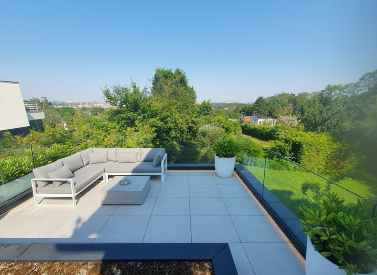 Östlich ausgerichtete Dreifachparzelle in familiärem Hietzinger Wohngebiet mit Blick über Wien.