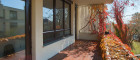 Das helle Wohnzimmer führt direkt auf die Terrasse, während die angrenzende Küche ebenfalls über einen eigenen Zugang zur Terrasse verfügt. Die überdachte Terrasse lädt dazu ein, auch bei schlechtem Wetter oder in der Übergangszeit Zeit im Freien zu verbringen. Von dort aus gelangen Sie in den idyllischen Gartenbereich.