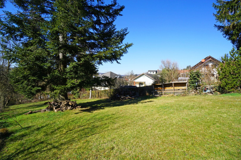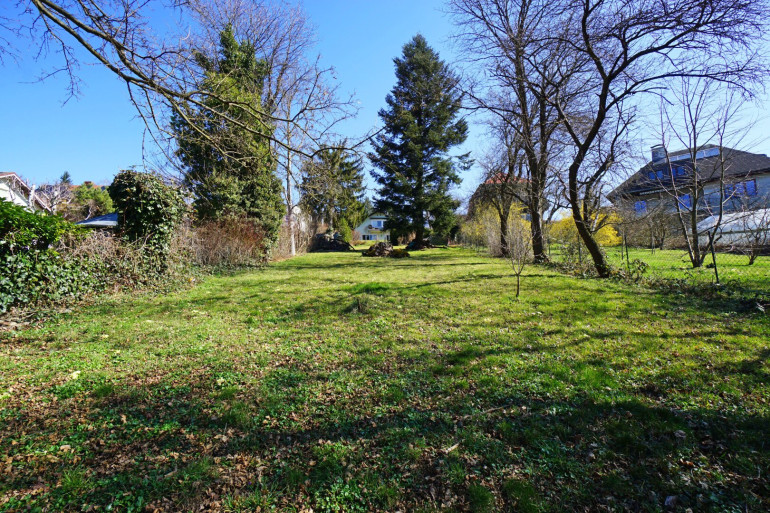 Das Grundstück resultiert aus einer Teilung und befindet sich in einer ruhigen und dennoch zentral gelegenen Wohnsiedlung. Es fällt nach Südwesten ab, liegt in zweiter Reihe zur Straße und ist über eine Fahnenzufahrt erreichbar. Aufgrund der Fahnenzufahrt und der eingebetteten Lage, ist der Grund von der Straße uneinsehbar.
