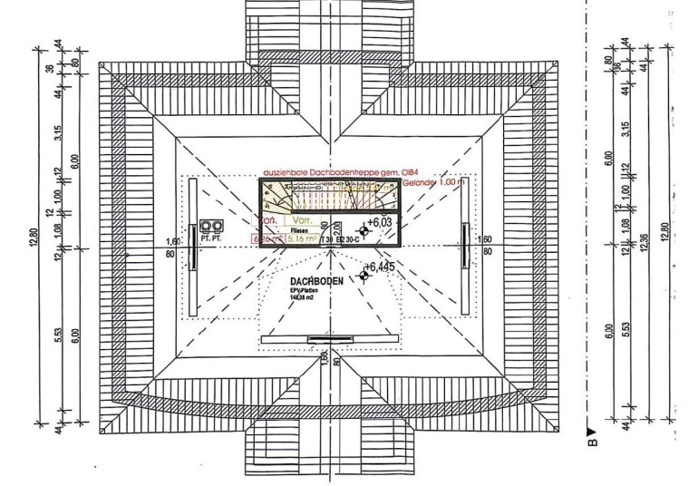 Über eine ausziehbare Dachbodentreppe erreichen Sie den großzügigen Dachboden.