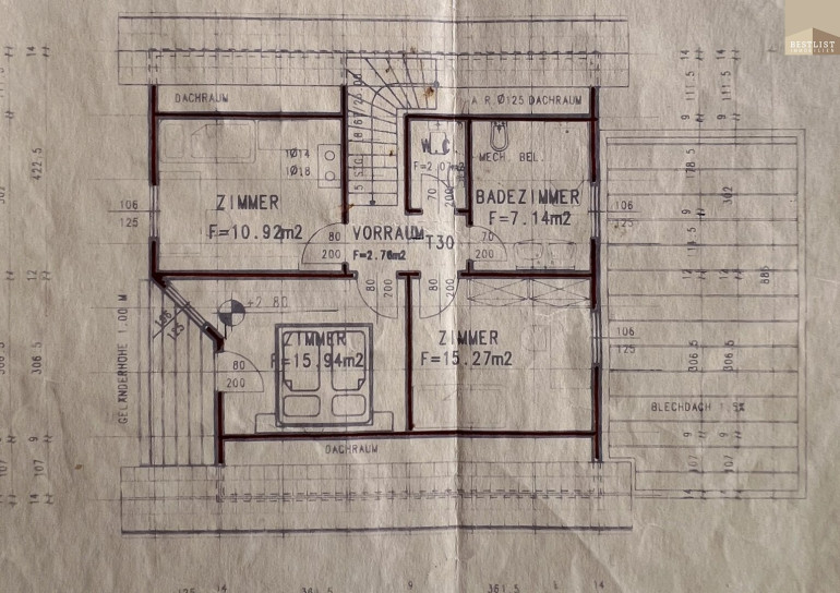 Das Obergeschoß bietet drei gut proportionierte Zimmer, eines davon mit eigenem Balkon. Ein weiteres Zimmer wurde bislang als Schrankraum genutzt und eignet sich ideal als begehbare Ankleide oder ruhiges Home-Office.