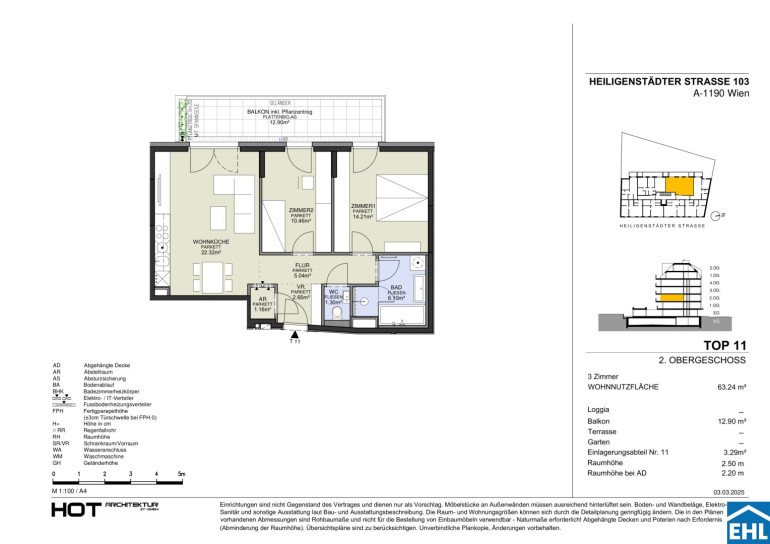 Fliesen, Parkett, Fußbodenheizung, Wohnküche / offene Küche, Personenaufzug, Westbalkon, Badewanne, Dusche, Tiefgarage