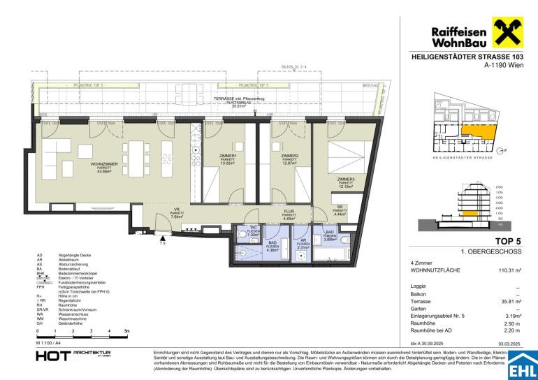 Parkett, Fliesen, Fußbodenheizung, Wohnküche / offene Küche, Personenaufzug, Westbalkon, Badewanne, Dusche, Tiefgarage