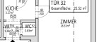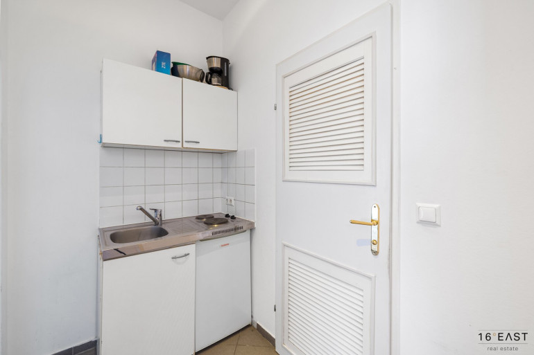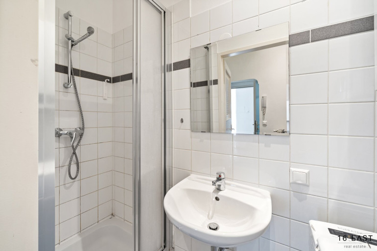Die Wohnung verfügt über einen Vorraum, eine separate kleine Küche, ein Badezimmer mit Dusche, eine separate Toilette sowie ein großzügiges, lichtdurchflutetes Wohn-Schlafzimmer. Sie liegt im 3. Stock (ohne Lift) in einem besonders ruhigen Bereich des Hauses. Ein Kellerabteil ist der Wohnung zugeordnet.