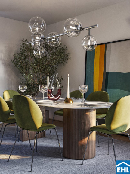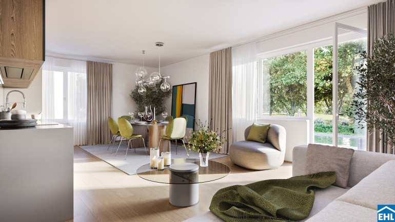Alle Einheiten verfügen über traumhafte Freiflächen – von einladenden Balkonen über idyllische Gärten bis hin zu exklusiven Dachterrassen mit beeindruckendem Grünblick – die eine harmonische Verbindung zwischen Innen- und Außenraum schaffen.