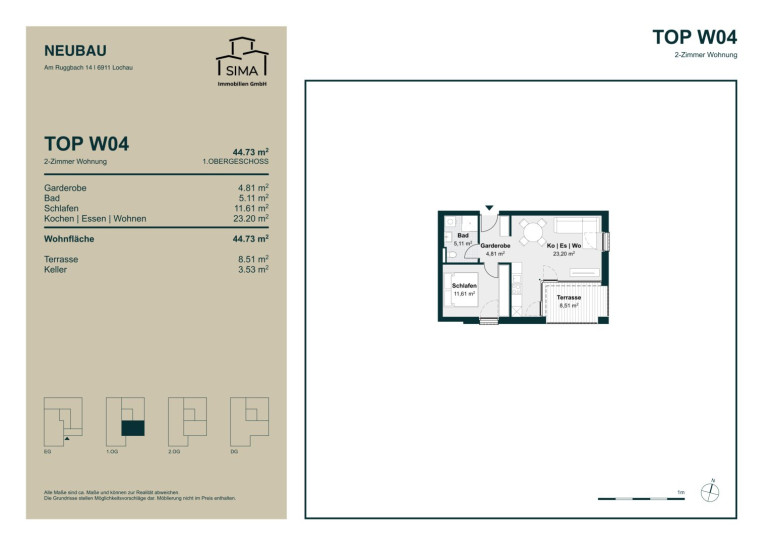 - 44,73 m² Wohnfläche mit großzügiger Raumaufteilung
