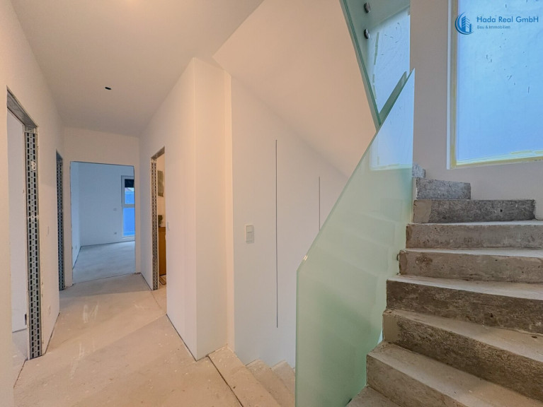 Im Innenbereich erfolgen noch die Fertigstellungsarbeiten der Oberflächen, insbesondere: Bodenbeläge (Parkett), Wand- und Bodenfliesen sowie die Montage der Innentüren. Diese Ausführung erfolgt im Rahmen der schlüsselfertigen Herstellung gemäß Bemusterung.