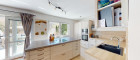 Schon bei Betreten des Hauses über den Vorraum öffnet sich Ihnen der große, helle Wohnbereich durch die offene Raumplanung.