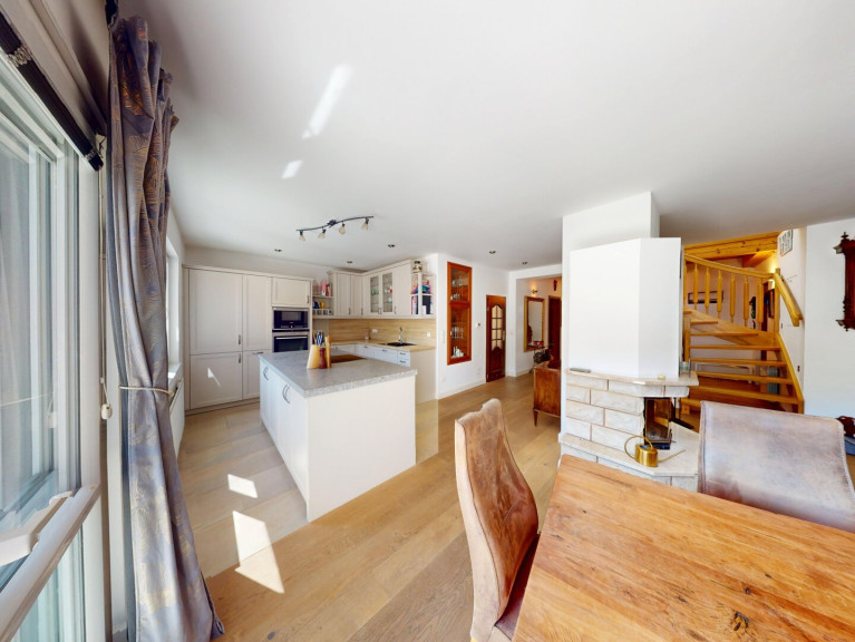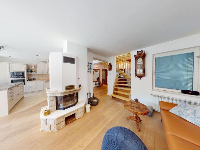 Parkett, Fliesen, Steinboden, Gas, Kamin, Zentralheizung, Einbauküche, Wohnküche / offene Küche, Ostbalkon, Westbalkon, Badewanne, Dusche, Kabel/Satelliten-TV, Parkplatz, Carport, Sauna, Wasch/Trockenraum