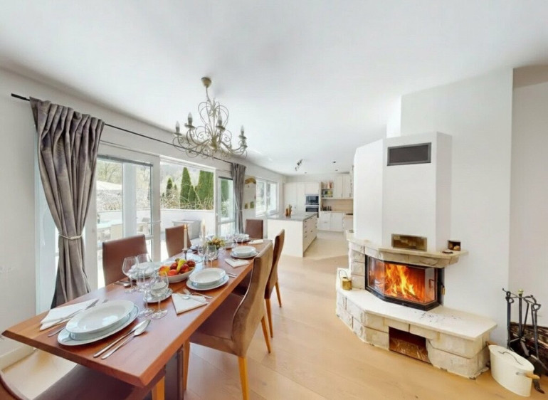 Parkett, Fliesen, Steinboden, Gas, Kamin, Zentralheizung, Einbauküche, Wohnküche / offene Küche, Westbalkon, Ostbalkon, Badewanne, Dusche, Kabel/Satelliten-TV, Carport, Parkplatz, Sauna, Wasch/Trockenraum