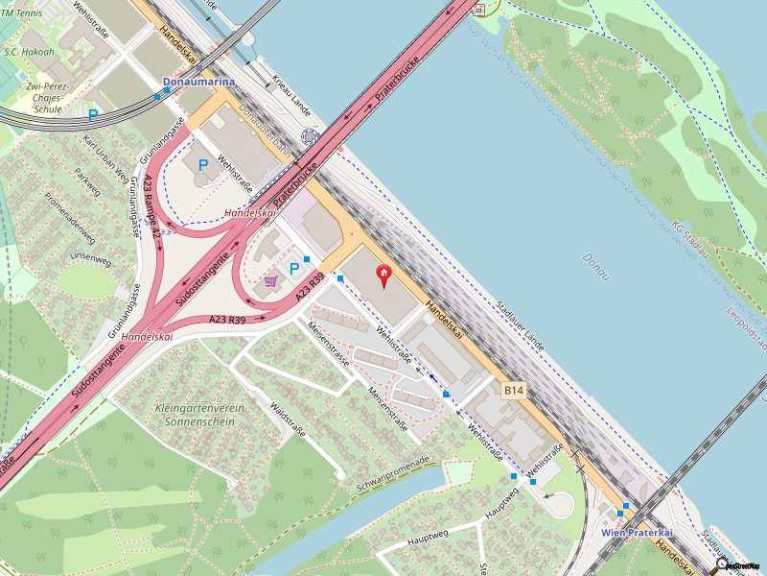 Eine leichte Erreichbarkeit des Bürogebäudes ist dank der nahegelegenen U-Bahn-Station Donaumarina sowie einer Busstation direkt vor dem Gebäude gegeben. Ebenfalls überzeugt der Standort durch die Nähe zum Erholungsgebiet Donauinsel und bietet auch einen schnellen Anschluss an die beiden Autobahnen A23 und A22.