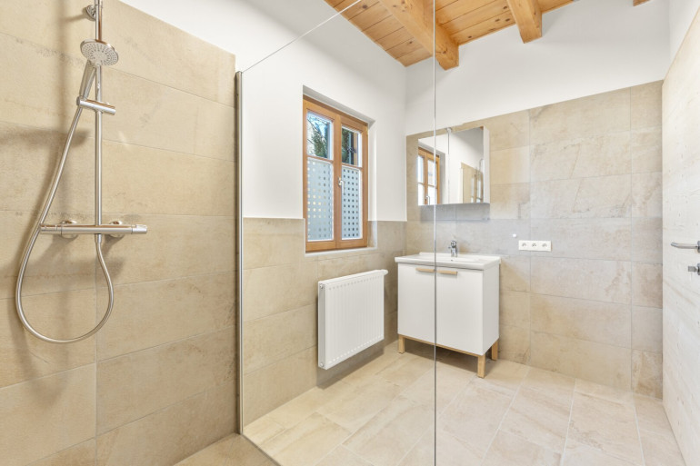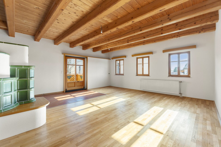 Das Landhaus teilt sich wie folgt auf: Sie kommen zuallererst in den geräumigen Eingangsbereich. Vom Vorraum aus gelangen Sie noch in zwei weitere kleinere Zimmer, dieses Sie entweder als Büro bzw. Ankleideraum nutzen können, von dort aus kommen Sie direkt in den wunderschönen Wohnbereich, der mit einem Kachelofen ausgestattet ist, die wunderschöne Terrasse samt Garten runden das Ambiente noch stimmig ab. Im Erdgeschoss befindet sich noch die Küche, eine Toilette und ein modernes Badezimmer. Im 1.Obergeschoss gelangt man jeweils noch in 4 Zimmer, wobei jedoch drei dieser Zimmer einen Balkon haben, ebenso befindet sich in diesem Stock ein modernes Badezimmer samt Toilette.