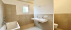 Großes Badezimmer mit ca. 10 m², ausgestattet mit Dusche, Badewanne und WC