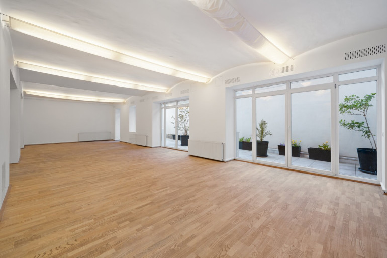 Die Einheit wurde kürzlich umfassend saniert und zuletzt von einem renommierten Künstler als Galerie genutzt. Hochwertige, moderne Ausstattung trifft hier auf den klassischen Altbaucharakter, wodurch eine Atmosphäre entsteht, die sowohl repräsentativ als auch funktional ist.