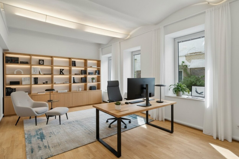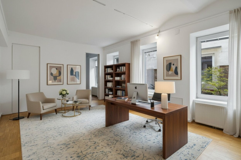 Die ruhige Innenhoflage gewährleistet ein außergewöhnlich stilles Arbeitsumfeld sowie ein hohes Maß an Privatsphäre – ein wesentlicher Vorteil für Praxis- und Büronutzungen.