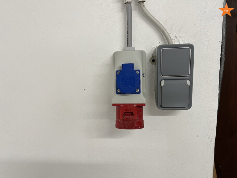 Einfahrtstor (wie Garagentor, aber manuell zu öffnen). Starkstrom vorhanden. Strom wird extra verrechnet (Subzähler!)