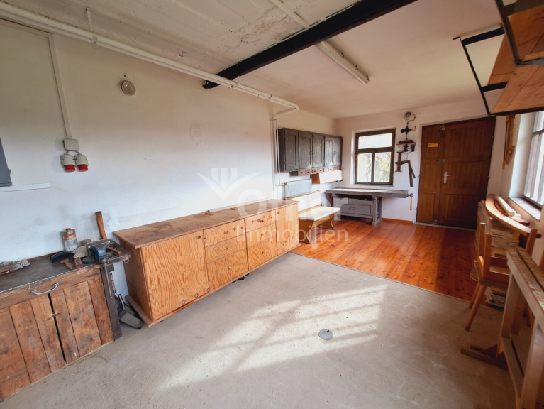 Die grüne Umgebung in beinahe Alleinlage verspricht ein entspanntes Leben abseits der Alltagshektik. Eine Bewirtschaftung des geneigten Grundstücks mit Tieren und die Nutzung des angelegten Gartens auf ebener Fläche beim Haus ist möglich. Ein ca. 3.900 m² großes Waldstück mit mittelmäßigem Baumbestand gehört zur Liegenschaft. Diese vielseitige Immobilie kombiniert praktische Nutzungsmöglichkeiten mit einem großzügigen Raumangebot und eignet sich sowohl für Familien als auch für die Ausübung Ihrer Hobbies in den eigenen Werkstätten mit viel Stauraum.