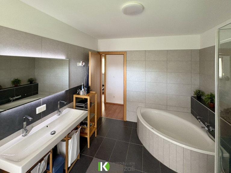 Von der teilweise überdachten Terrassefläche genießen Sie einen herrlichen Fern- und Grünblick über den Wienerwald – ein Ort, der jeden Tag Urlaubsgefühle weckt. Das Hanggrundstück bietet zwei ebene Gartenflächen, ideal für Freizeit, Kinder oder Haustiere. Ob Fußballspielen, Grillabende oder einfach die Ruhe genießen – hier ist Platz für alles, was Ihnen Freude macht. Sogar Rehe kommen bis vor die Haustür – Naturidylle inklusive!