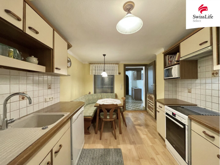 Das Haus wurde 1951 errichtet und durch einen Zubau 1986 erweitert. Es besteht aus 2 Wohneinheiten mit einer Wohnfläche von insgesamt ca. 140 m². Der größere Wohnbereich befindet sich in einem gepflegten Zustand und verfügt über insgesamt 4 Zimmer zuzüglich Wohnküche, die sich auf einer Ebene verteilen. Das kleinere Gebäude verfügt über 2 Zimmer und eine Wohnküche. Beide Bereiche sind teilweise renovierungs- und modernisierungsbedürftig, haben jedoch großes Potential für eine individuelle Gestaltung nach eigenen Vorstellungen.