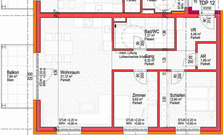 Parkett, Fliesen, Zentralheizung, Personenaufzug