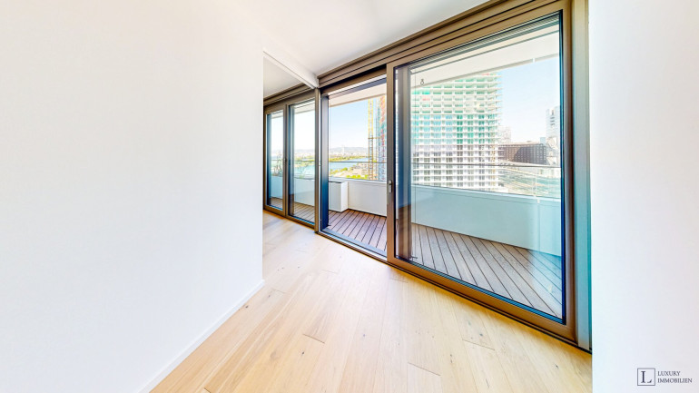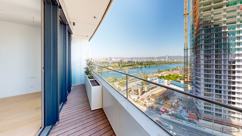 In bester Lage direkt an der Donau bieten die 48 Stockwerke und ca. 180 Meter Höhe unvergleichliche Ausblicke und Wohnkomfort auf Top-Niveau.