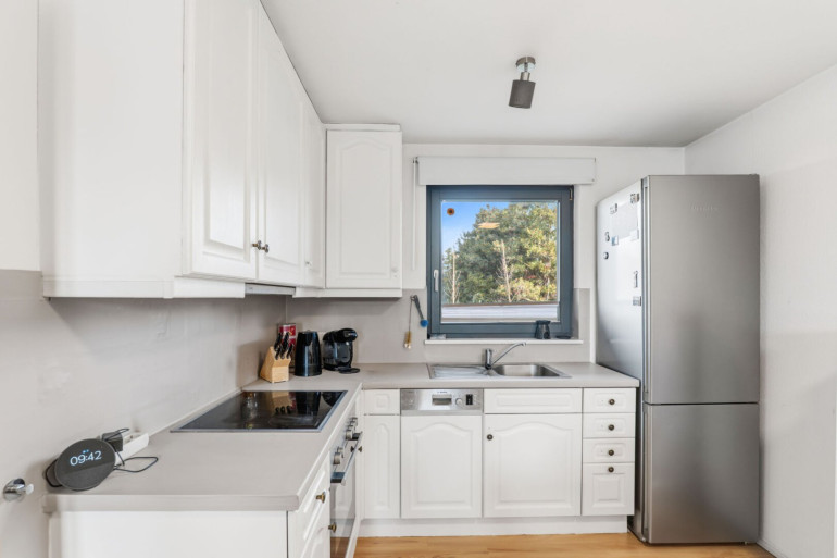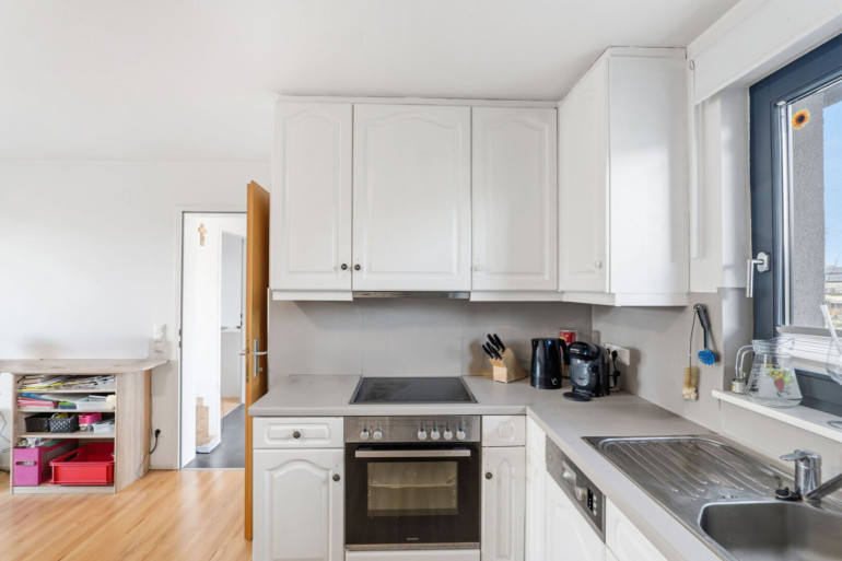 Die Wohnung verfügt über eine moderne Einbauküche, die nicht nur funktional ist, sondern auch stilvoll daherkommt.